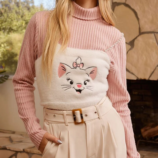 The Disney Marie Fuzzy Cropped Cami with pearl straps looks great when paired with a turtleneck underneath to keep warm during the cold winter months.