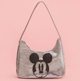 Dazzle and delight by adding a sequin purse with a Mickey Mouse graphic to your outfit.