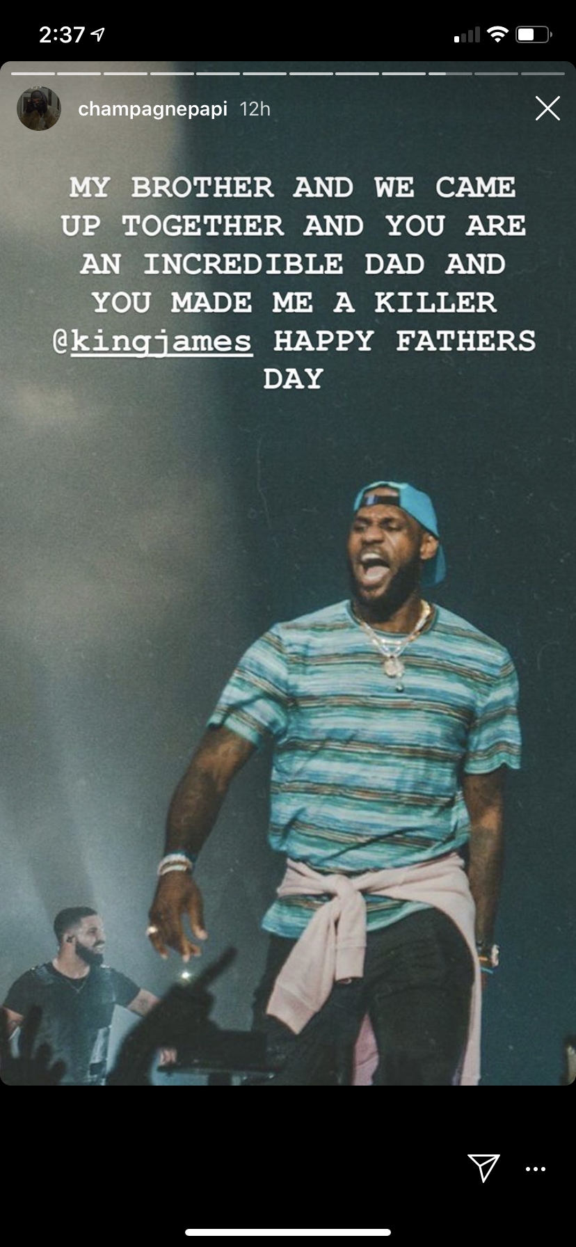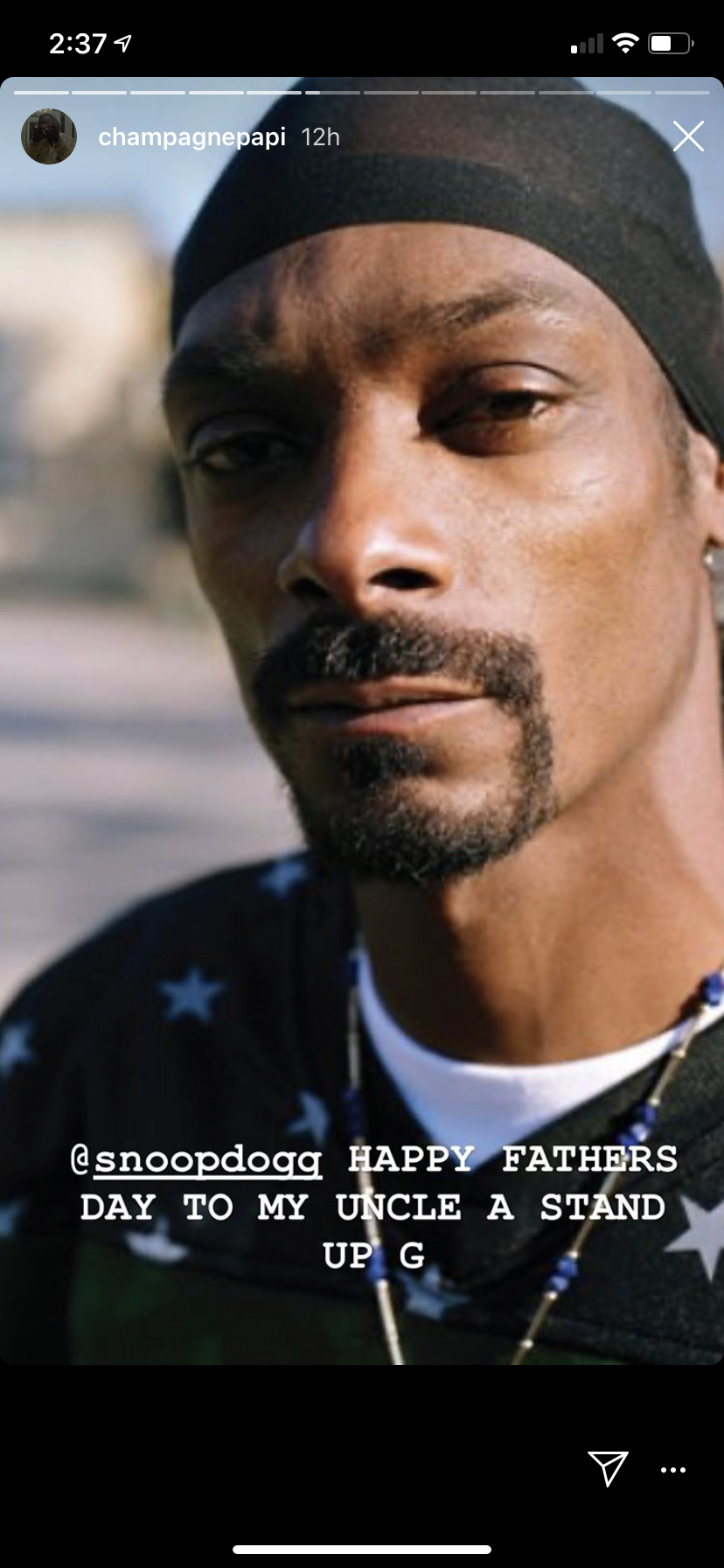 Drake also praised Lil Wayne for being an example of how to balance fatherhood with music. He gave Father's Day tributes to Wayne, Snoop Dogg and more on his Instagram Story on Sunday.