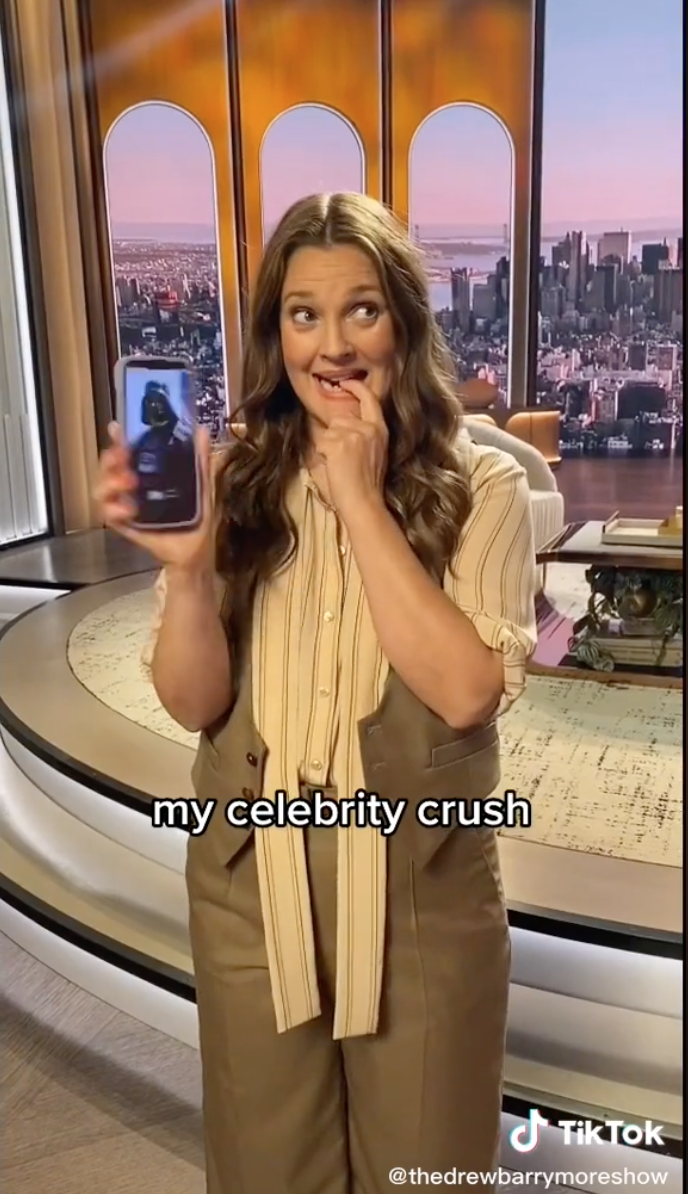 Drew Barrymore hopped on the fast-spreading TikTok trend to not-so-secretly reveal her best onscreen kiss, most surprising phone contact, and dream biopic actress this week.