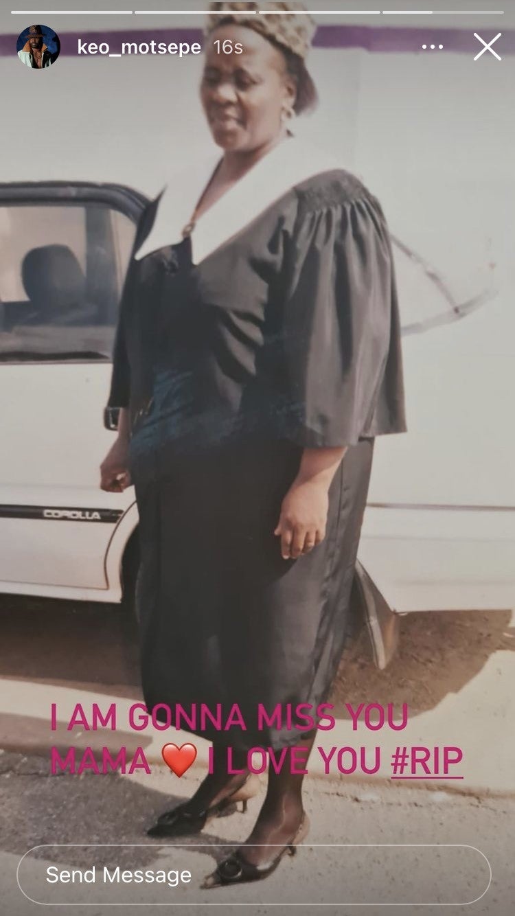 "I am gonna miss you mama," Motsepe wrote on his Stories. "I love you. #RIP."