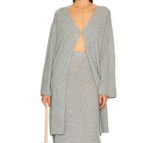 For lounging at home and looking stylish on the streets, the sweater part of this matching cashmere set shows a sultry hint of skin.