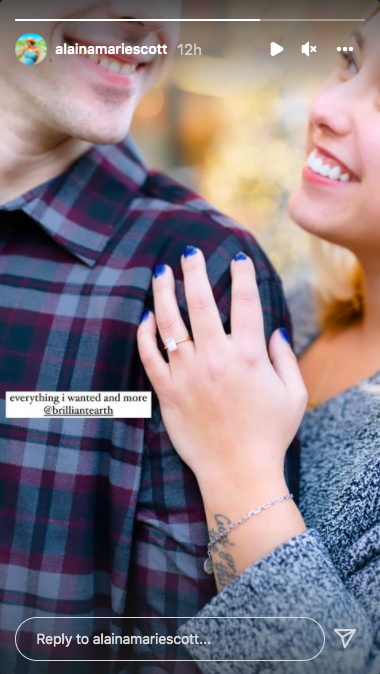 Alaina showed off her emerald cut diamond ring with a yellow gold band. "Everything I wanted and more @brilliantearth," she wrote on her Instagram Stories, tagging the ethical jewelry company.