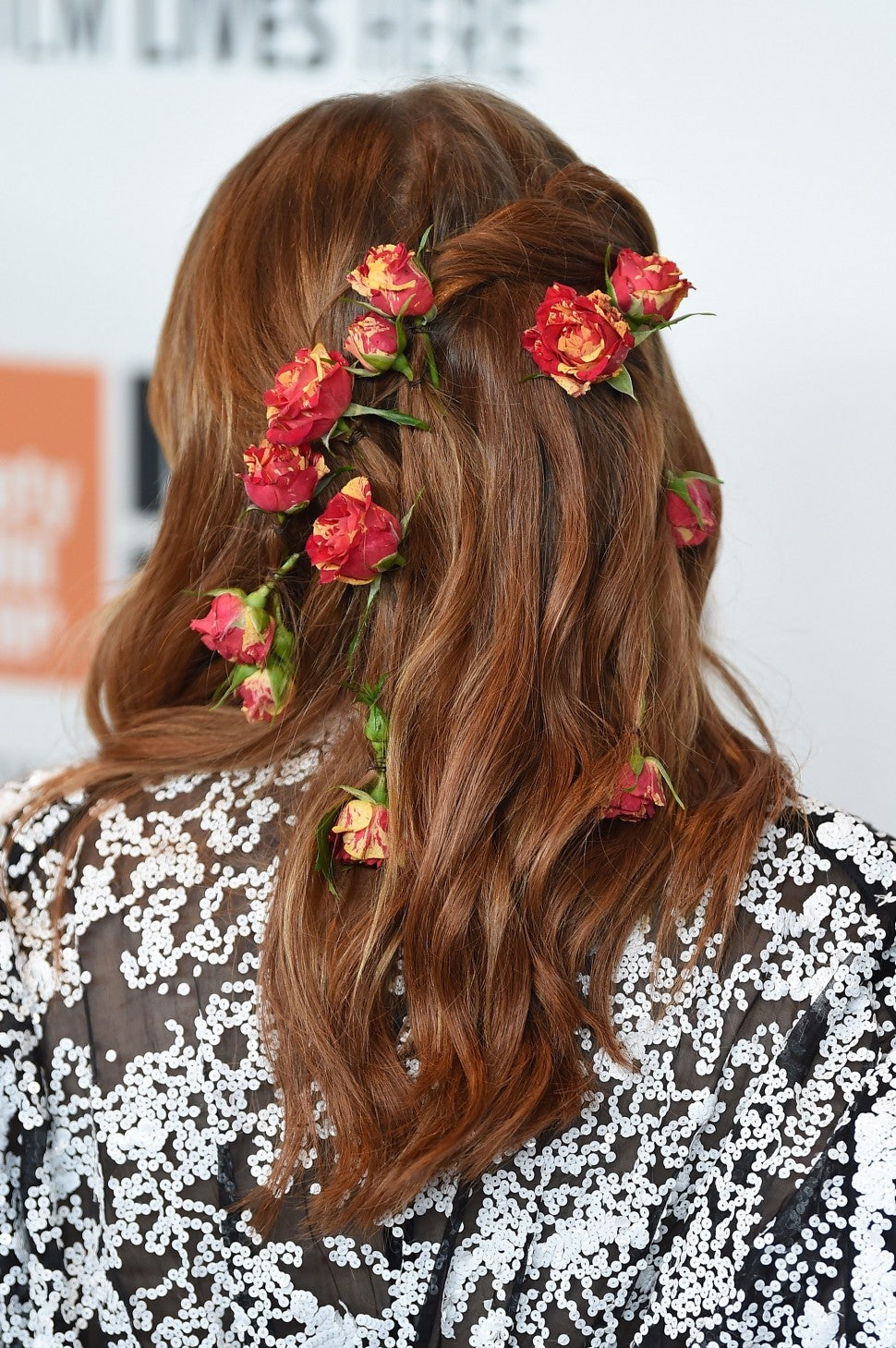 Ever since we saw Emma Stone's auburn tresses adorned with red roses back in September, we could not get it out of our heads. The beautiful flowers complemented her soft, romantic waves and it's everything we want to wear for date night.