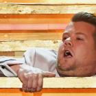 James Corden Opens GRAMMYs 2017 by Tripping Down the Stairs, Dissing Donald Trump in Epic Rap It's probably no coincidence that the fail-filled gag came immediately after Adele's performance.