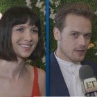 ET caught up with the 'Outlander' cast and creators in Los Angeles on Sunday and we discovered the behind-the-scenes secrets of Jamie and Claire's mysterious carvings!