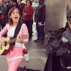 Watch the Original Pink Power Ranger Singing in the Street - in Costume Amy Jo Johnson is drumming up funds (and publicity) for her next project.
