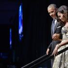 First Lady Michelle Obama Stuns in Gold at Congressional Black Caucus Awards The first lady stole the spotlight in a strapless gold gown while Barack Obama spoke the final time as president.