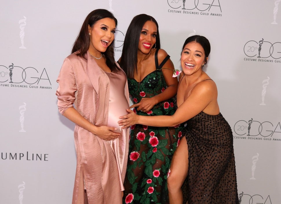 Longoria wasn't the only star who looked radiant at the CDGAs on Tuesday. The star's close friend Gina Rodriguez -- who Longoria worked with while directing an episode Jane the Virgin -- wore a low-cut semi-sheer black dress.