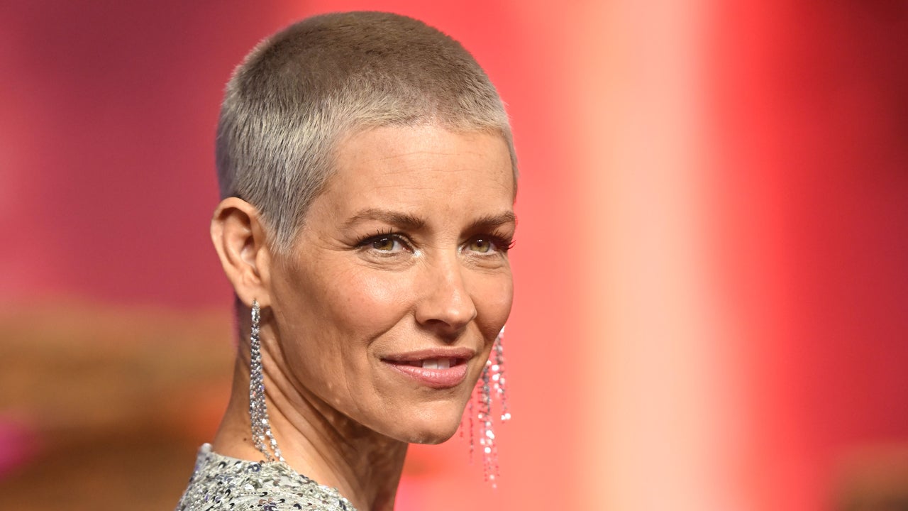 On Thursday, the 43-year-old actress was all smiles as she hit the red carpet at BFI IMAX Waterloo in London, England, wearing a fun silver sequin gown with plenty of tassels and Lana jewelry. The look was a perfect match for her gray hair and new buzz cut.
