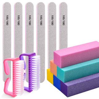 You can scrub off dry skin, file the nail and then buff with this 12-piece manicure set that also works perfectly for a pedicure.