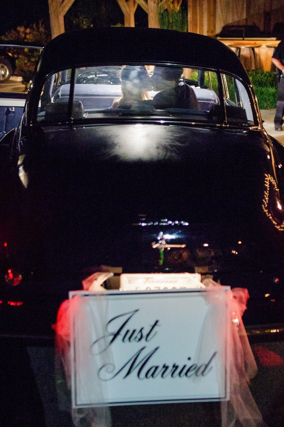 The Lancasters made their getaway in a blue 1949 Cadillac on Sunday night, before boarding a plane to Mexico the next morning for their honeymoon.