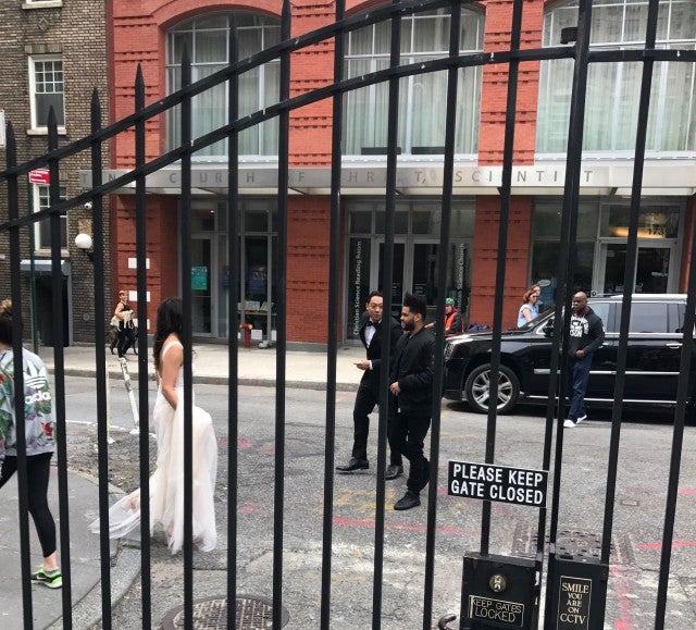 "The couple was taking wedding photos in front of the homes on the picturesque MacDougal Alley, a gated residence in Greenwich Village," an eyewitness told ET. "During the romantic shoot, the groom spotted The Weeknd in a parked SUV."