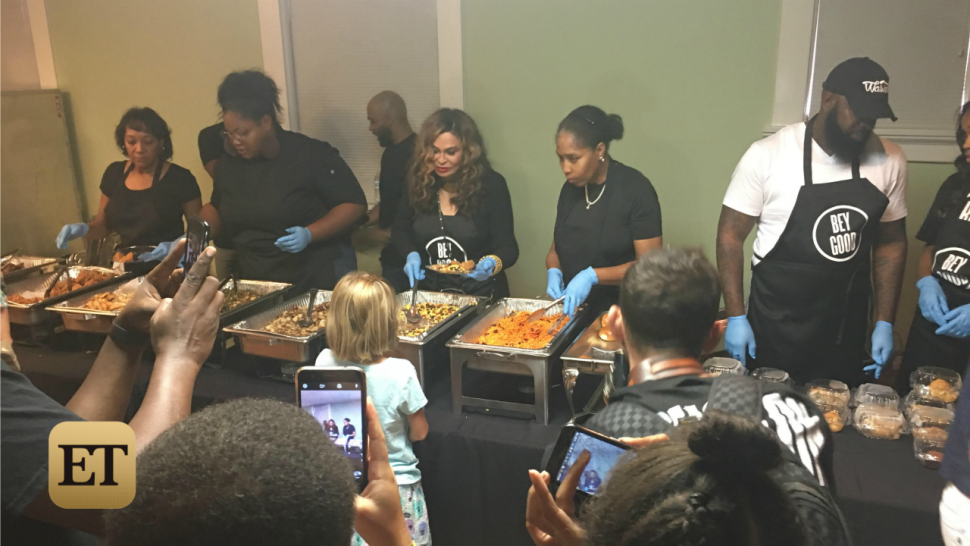 Earlier in the day, Knowles Lawson and Williams helped out by serving lunch to 400 flood victims while wearing aprons with the logo of Beyonce's organization, BeyGOOD. The day was very emotional for everyone, including evacuees who have suffered the most. But together they have all come together to help one another.