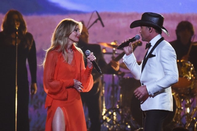The couple had fun backstage, but turned up the heat when it came time for their duet during the show. Hill went red-hot for her stunning performance of "Rest of Your Life," wowing the audience as she emerged in a show-stopping gown with a thigh-high slit while McGraw crooned the song's romantic lyrics.