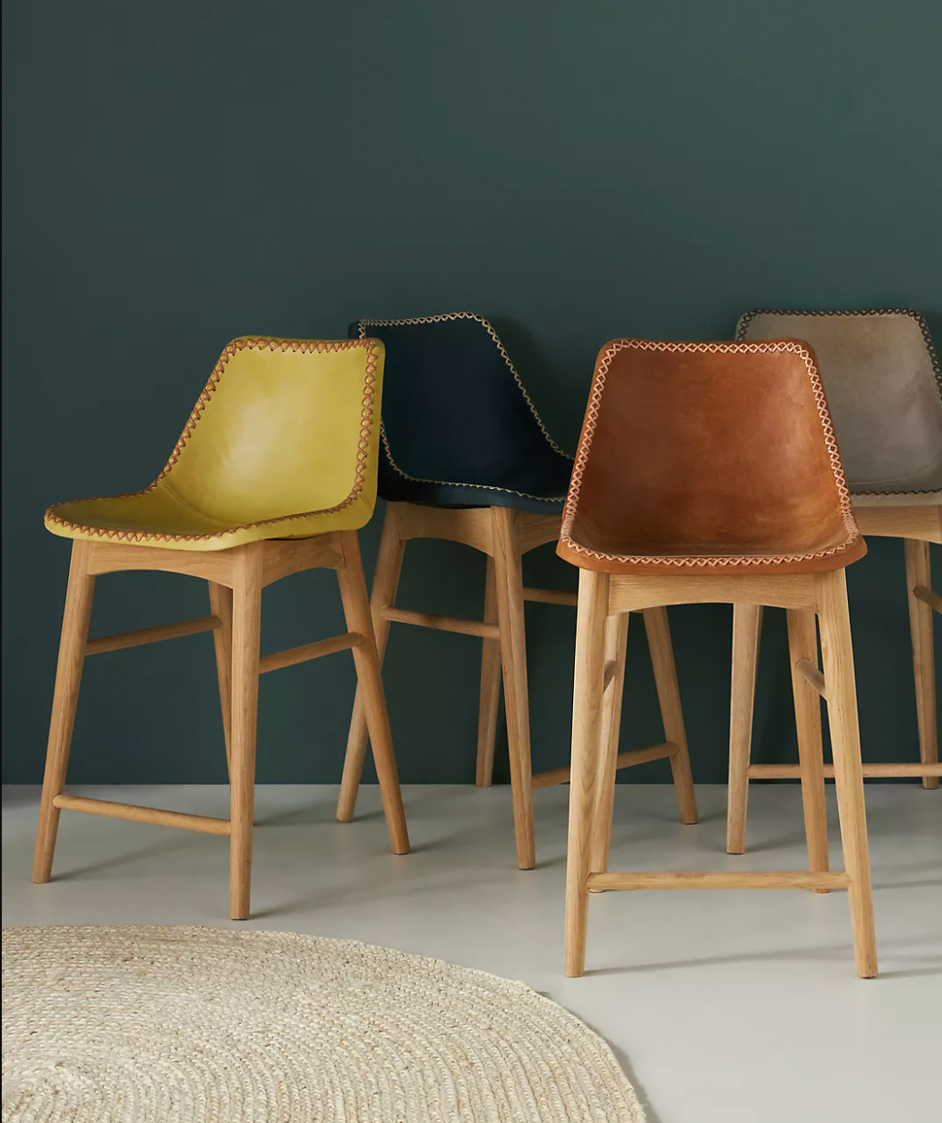 This chic stool is available in the colors of caramel, citron, sage and navy.