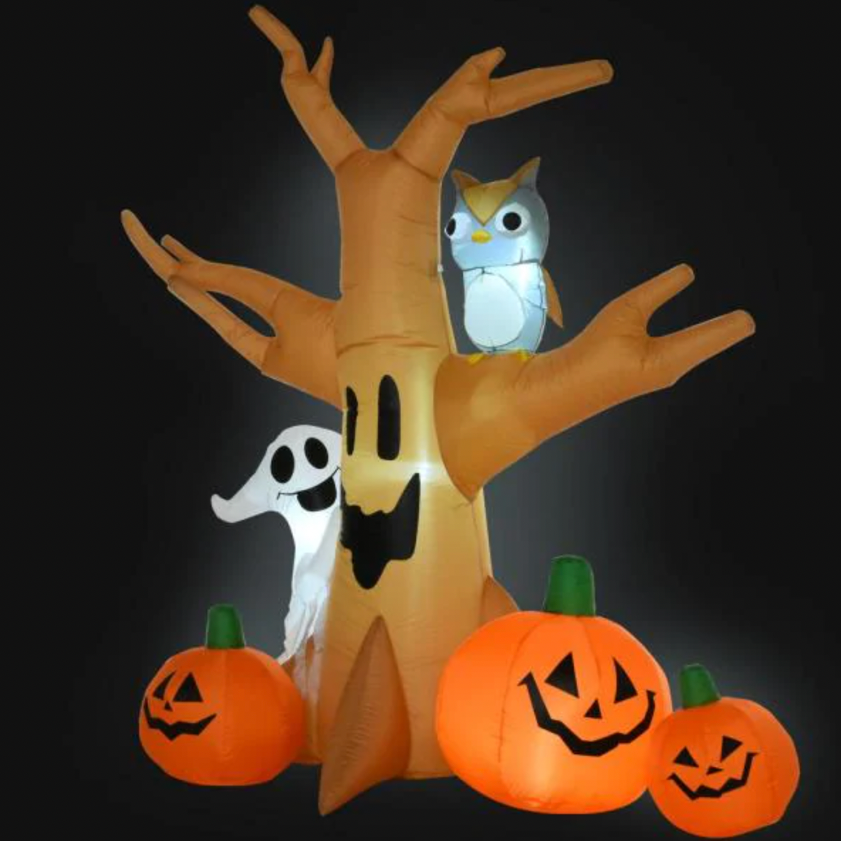 LED Haunted Tree With Owl, Ghost, and Pumpkins Halloween Inflatable