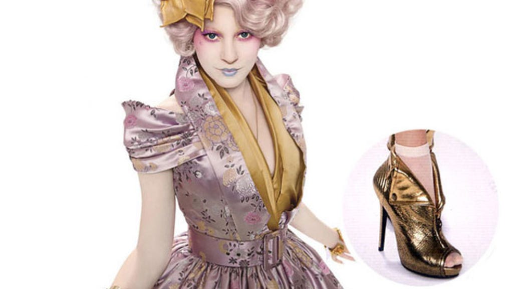 The shoes -- When Capitol Couture, Lionsgate's tumblr focused solely on Hunger Games fashion, made its debut in January, it gave fans a fabulous peek into the film's stunning shoes. Among them? Effie Trinket's spectacularly gaudy pair of Alexander McQueen gold "Faithful" peep-toe booties pictured above. The site also gave us close-ups of a "coal" black pair of grosgrain peep-toes (alluding to District 12's specialization in coal mining), a futuristic-like periwinkle peep-toe worn by a "City Circle" waitress, and hot-pink open-toed gladiator heels on a Capitol citizen inside President Snow's mansion. If this is just a peek into the rest of the film's shoes, fans can only imagine what crazy stilettos will adorn the feet of Effie and her Capitol company!