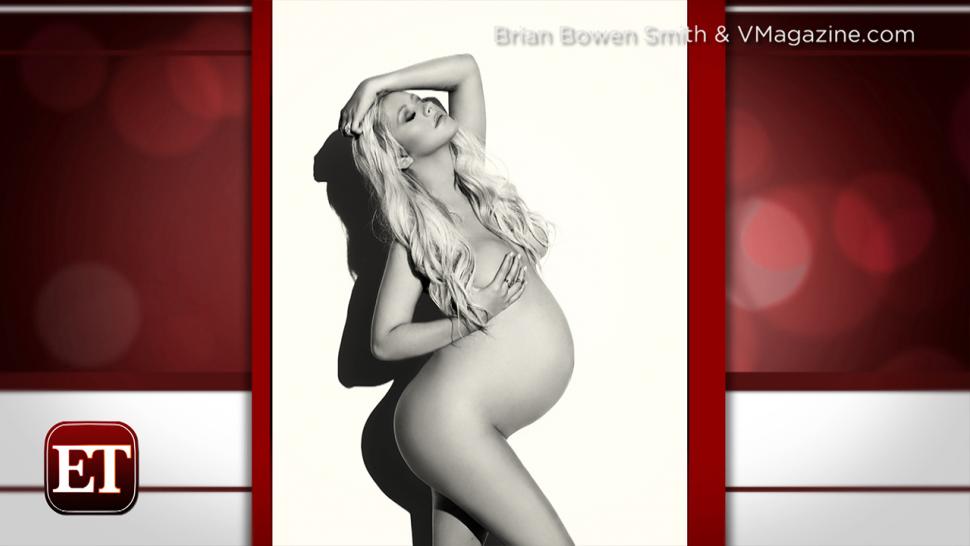The 33-year-old singer posed nude for VMagazine.com, showing off her prominent baby bump and placing her hands strategically to keep the black-and-white photo shot by photographer Brian Bowen Smith from tumbling into X-rated territory.