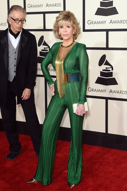 She may be reluctant to call herself an icon, but when Rihanna says she wants to be you when she grows up, you’re certainly doing something right. That’s exactly what happened when Fonda encountered the singer and fashionista backstage at this year’s GRAMMY Awards. The actress was wearing a fresh-off-the-runway Balmain jumpsuit that landed her on best-dressed lists next to RiRi, Beyonce, and other queens of fashion more than forty years her junior.