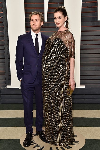 Hathaway walked the carpet with hubby Adam Shulman, whom she married in September 2012. The couple are expecting their first child this spring.