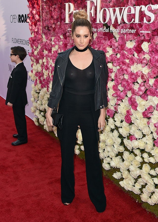Looks like Ashley Tisdale didn't account for photographers' flashes when it came to her sheer black top at the Mother's Day premiere in Hollywood, California, on Wednesday. The 30-year-old actress wore an edgy all-black outfit complete with a choker and a leather jacket, but it's the obviously braless factor that had everyone talking.