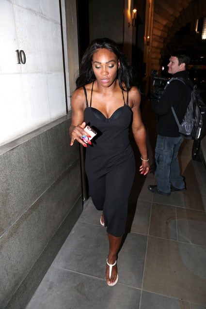 Follow the swanky soiree, Williams was ready to party. Donning a sexy, bra-baring black jumpsuit, the acclaimed athlete was spotted heading to Lewis Hamilton's party to celebrate his win at the British Grand Prix.