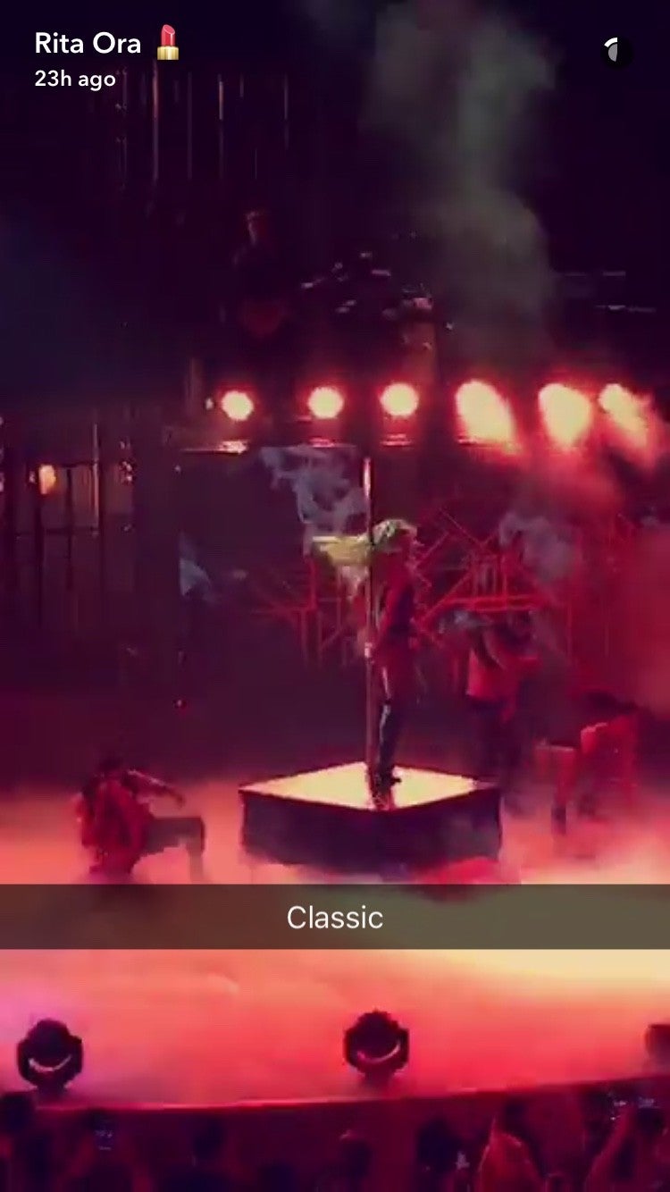 Ora had a great time inside the venue as well, Snapchatting herself singing along to some of Spears' biggest hits, plus shots of the pop star pole dancing while performing "Slave 4 U." Not bad for Spears' first concert outside of Las Vegas in five years, eh?