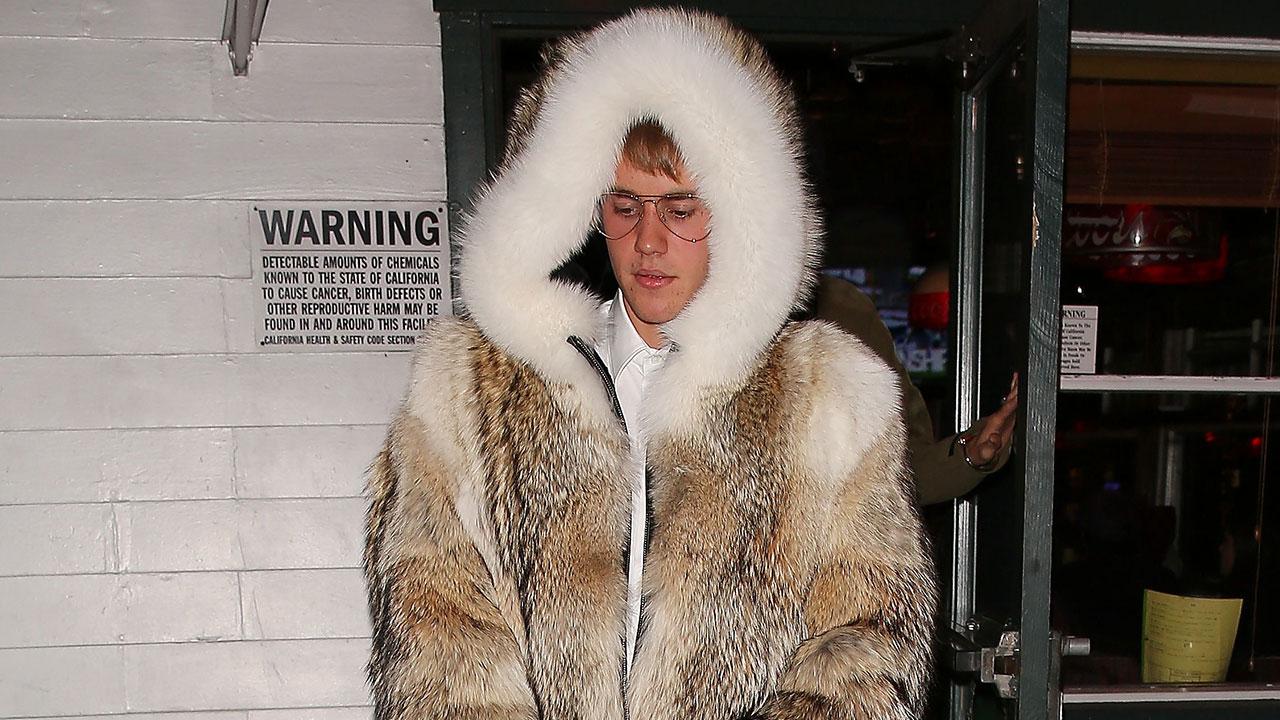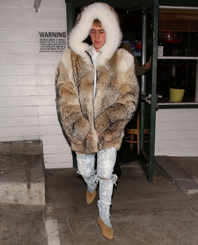 Despite the chill, a source tells ET that Bieber was in "great spirits" at the party, while rocking his over-the-top fur jacket.