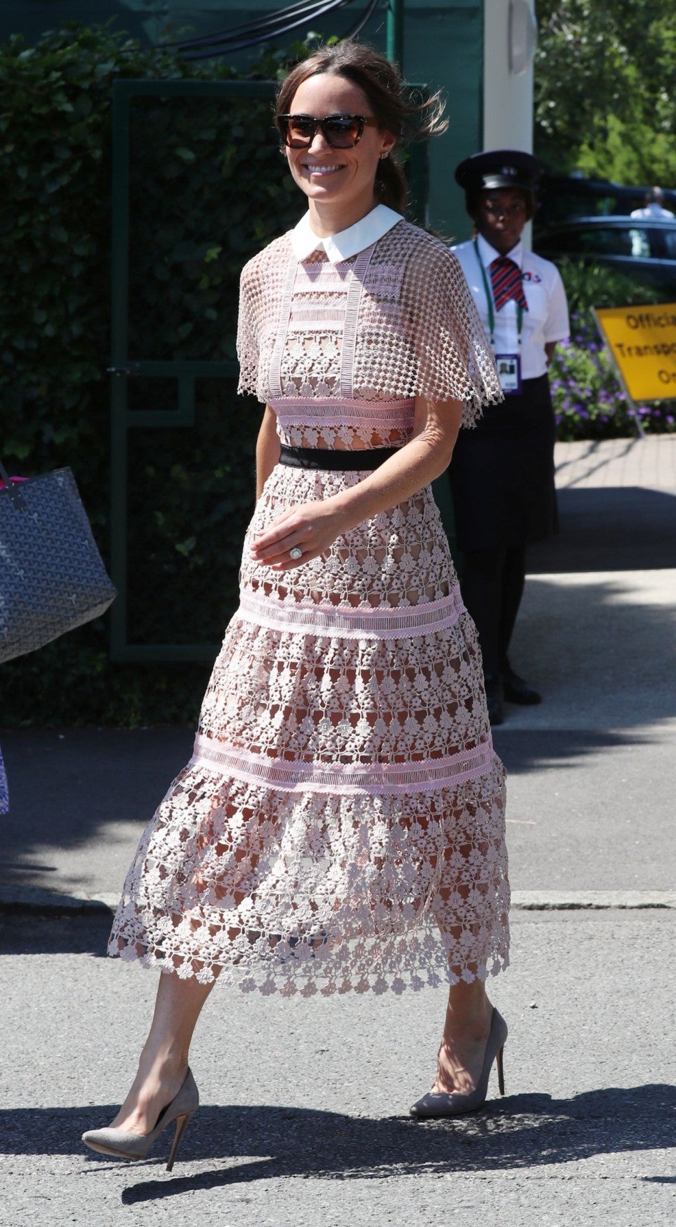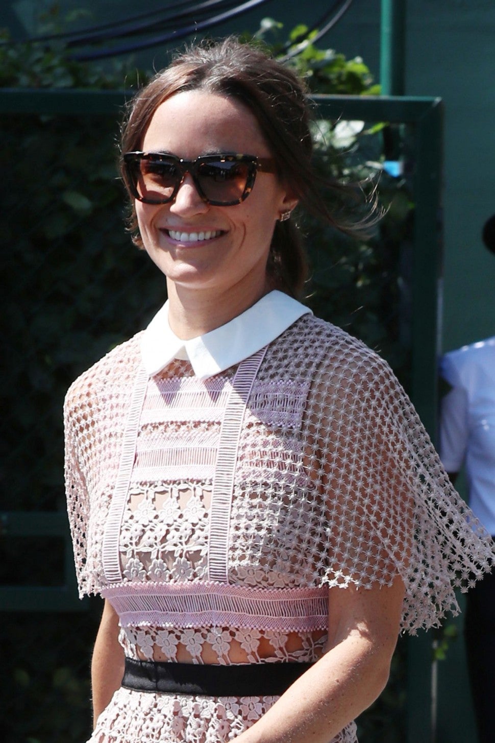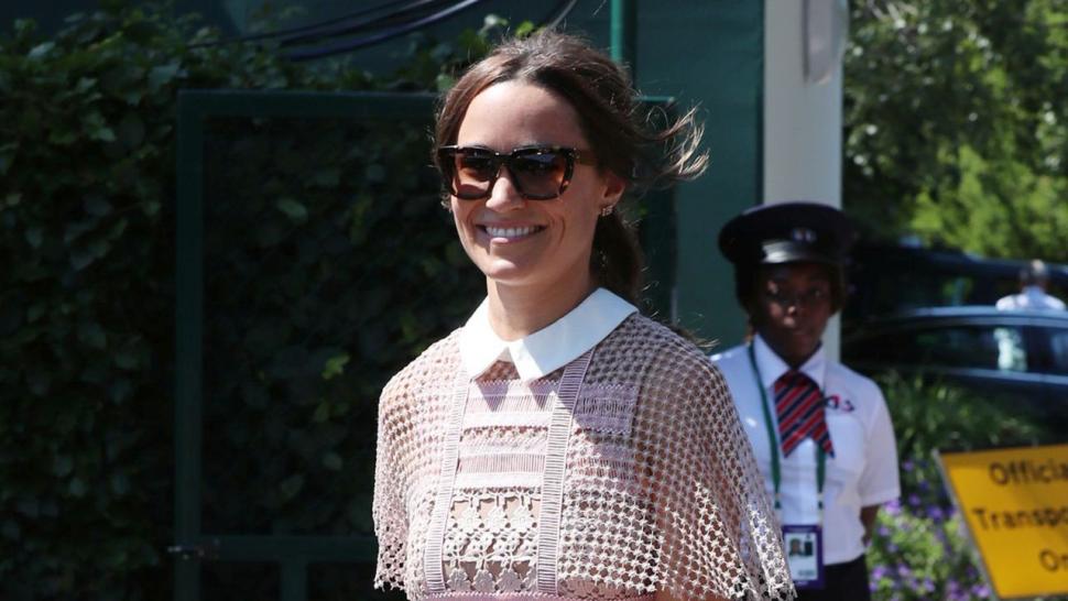 Fresh off her honeymoon with husband James Matthews last month, the younger sister of Kate Middleton was still glowing in London, England, on Wednesday, sporting a sweet and sophisticated ensemble to day three of Wimbledon.