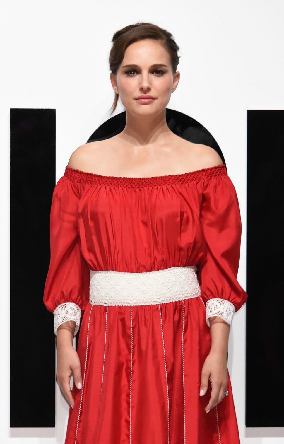Portman donned a boho-inspired red Dior dress for the occasion, accessorizing with statement heels and minimal jewelry.
