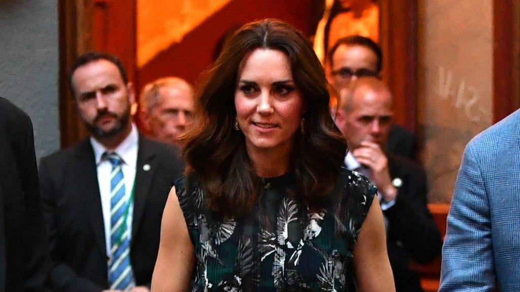 The 35-year-old royal opted for a printed midi dress from German designer Markus Lupfer, which featured a high neckline. She also re-wore the same Prada shoes that she wore the day before at the Queen's Garden party. Meanwhile, Prince William looked regal in navy slacks, a white crisp button-up and a lighter shade of blue blazer.