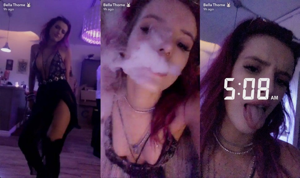 While at the Hollywood hot spot, Thorne shared a ton of videos on Snapchat of her and her equally colorful pals dancing, sticking their tongues out and jamming out to music.
