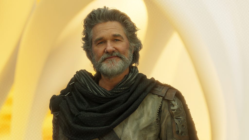 "He's a lot like Kurt Russell," Gunn adds of Ego. "He really is a lot like Kurt Russell. He's a very interesting guy and he's a very thoughtful guy and he's a very gregarious guy. And I think we get to see Kurt Russell in his full glory."