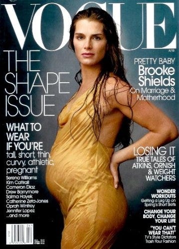 Brooke Shields appears drenched on the April 2003 cover of Vogue. Shields famously battled postpartum depression after the birth of daughter Rowan, who was born soon after.