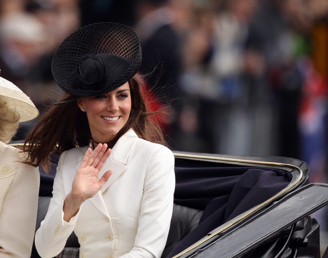 On June 11, Kate looked classic in a white, double-breasted jacket and black hat at the Trooping The Colour precession in London.