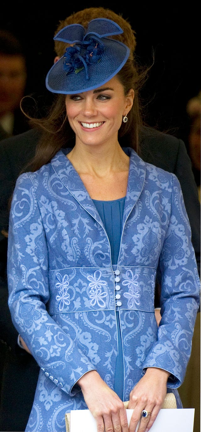 For the Duke of Edinburgh's 90th birthday on June 12, Kate looked great in this blue ensemble.