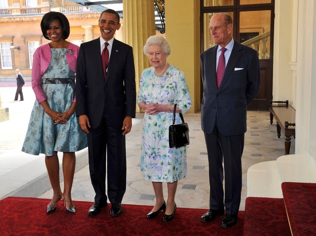 President Barack Obama and First Lady Michelle Obama meet with Queen Elizabeth II and Prince Philip, Duke of Edinburgh, at Buckingham Palace in London.