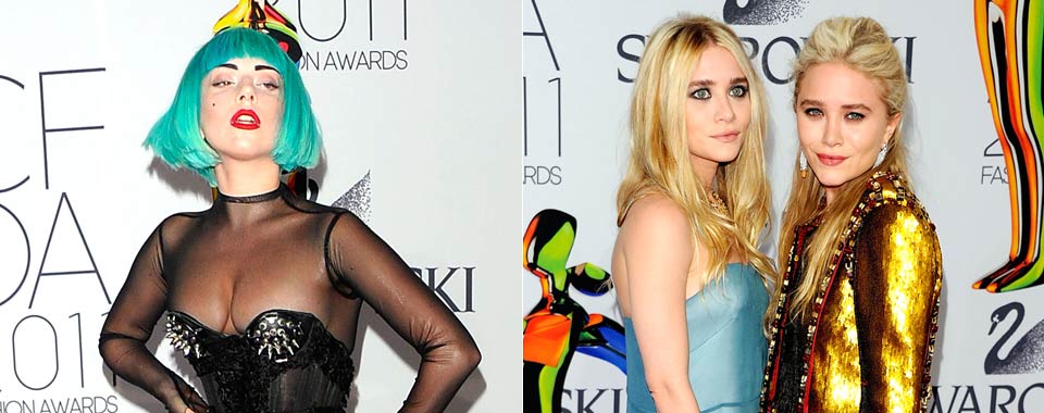 Move over MTV Movie Awards, a new style star has emerged! On Monday night, celebs, designers and the New York elite pumped up the volume with in-your-face fashions at the 2011 CFDA (Council of Fashion Designers of America) Fashion Awards at Alice Tully Hall in Lincoln Center on June 6, 2011 in New York City. From fashion-forward Olsen twins to the always dramatic Lady Gaga, the fashions rocked the red carpet. Take a look!