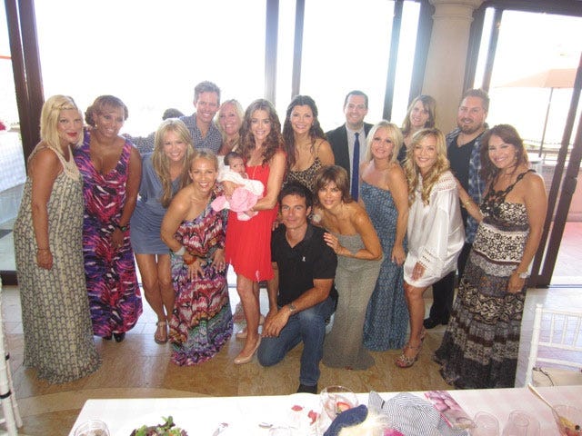 In this group photo, Denise can be seen cradling Eloise at the event done by party planner Mindy Weiss.