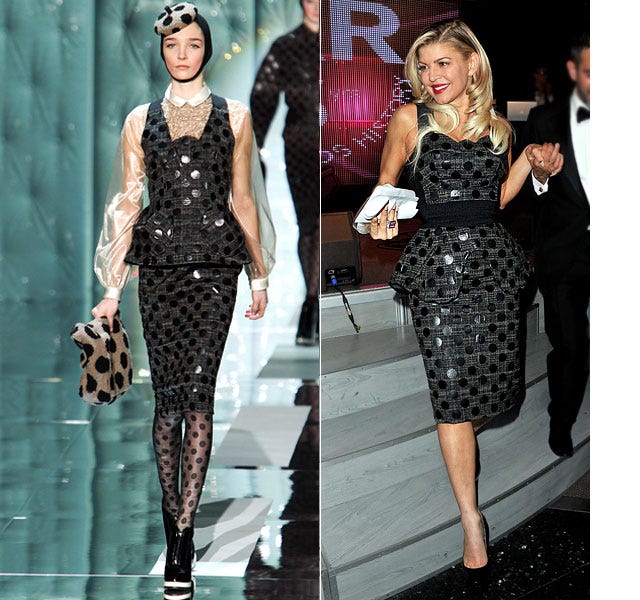 2011 in New York City. Similarly, Fergie steps out in the polka-dot Marc Jacobs frock during the amfAR Inspiration Gala on