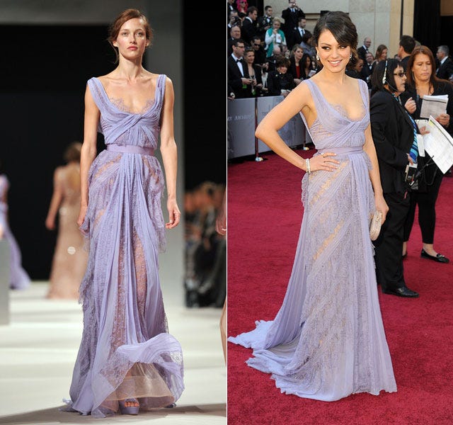 January 26, 2011 in Paris, France. Similarly, Mila Kunis stopped traffic in the Elie Saab design at the 83rd Annual Academy