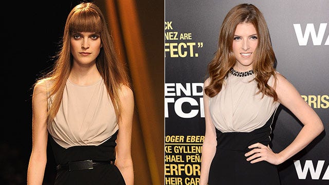 March 7, 2012 in Paris, France. Anna Kendrick wears the black-and-tan frock to the premiere of End of Watch on September 17, 2012 in Los Angeles.