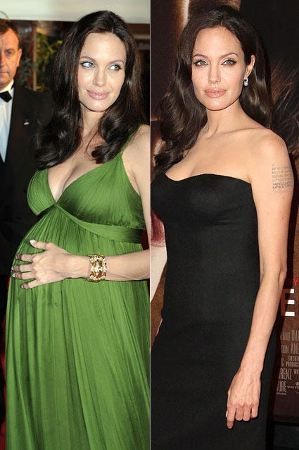 Angelina Jolie proudly displayed her baby bump at the Cannes Film Festival to promote Kung Fu Panda on May 15, 2008. Jolie debuted a svelte new figure at the premiere of Changeling on October 4, mere months after giving birth to twins Knox and Vivienne.
