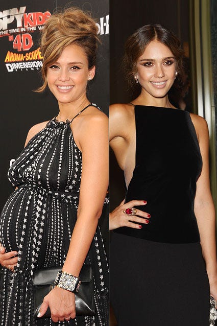 Jessica Alba brought her baby bump to the premiere of Spy Kids: All The Time In The World 4D on July 31, 2011. Less than four months later, Alba reveals her post-baby bod at the Armani Hotel Milano Opening on November 10, just three months after giving birth to daughter Haven.