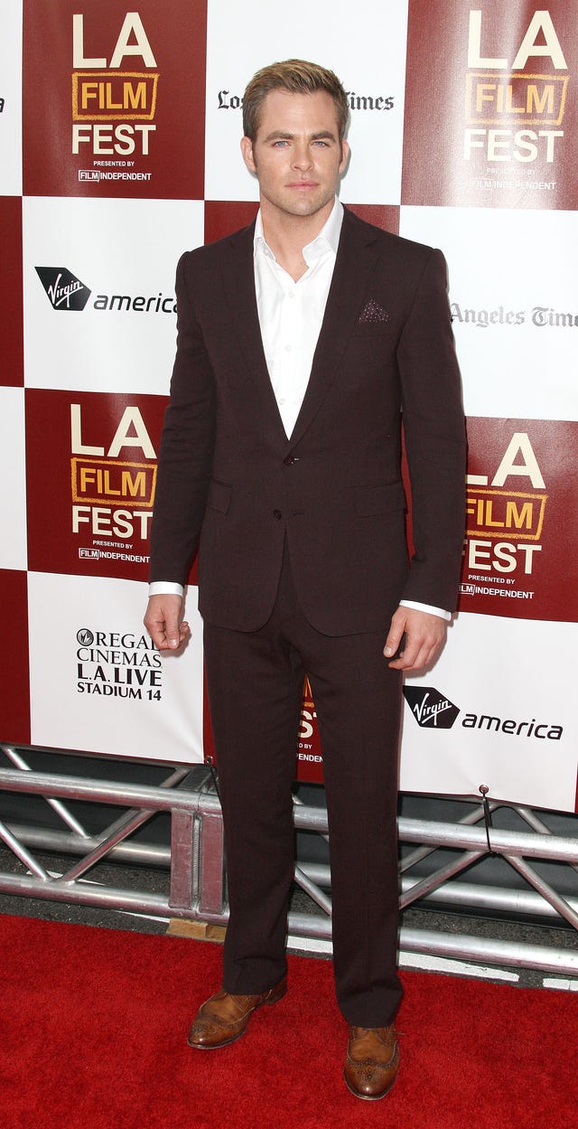 A dapper Chris Pine goes for something a bit different with a brown suit and no tie at Film Independent's 2012 Los Angeles Film Festival premiere of People Like Us on June 15, 2012 in Los Angeles, CA.