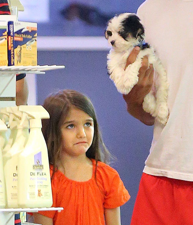 How much is that doggy in the window? Don’t tell Suri! In the midst of her very public split with Tom Cruise, Katie Holmes took her six-year-old daughter Suri to look at some puppies at Citipups pet shop in NYC. While there, the mother-daughter duo looked at two pups, a morkie (Maltese/Yorkie mix) and a French bulldog, but didn’t end up going home with a new four-legged friend. Unfortunately, Katie’s decision to not get a pup resulted in a very disappointed looking Suri. Take a look at sad Suri.