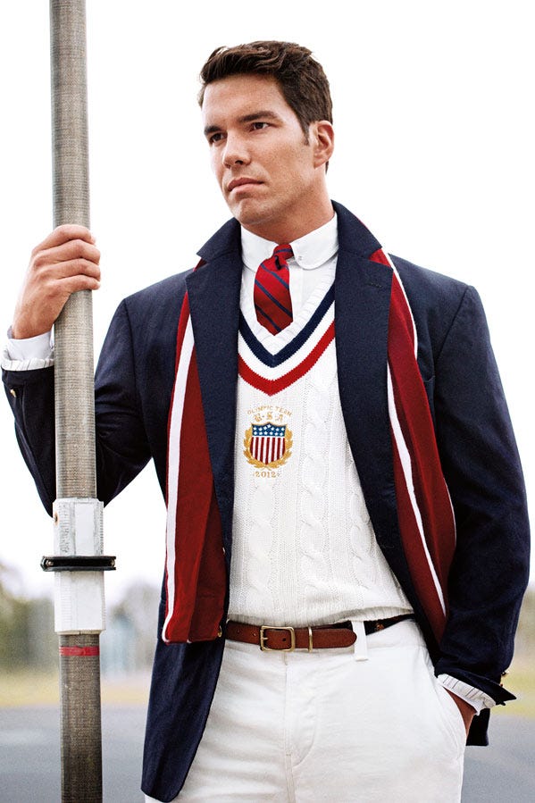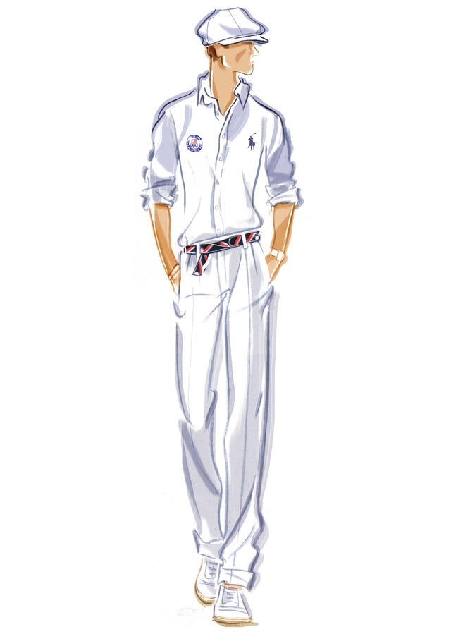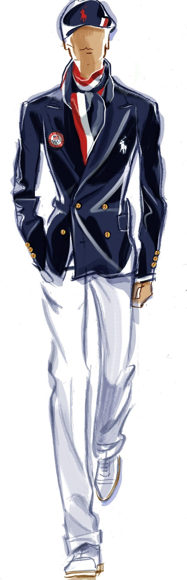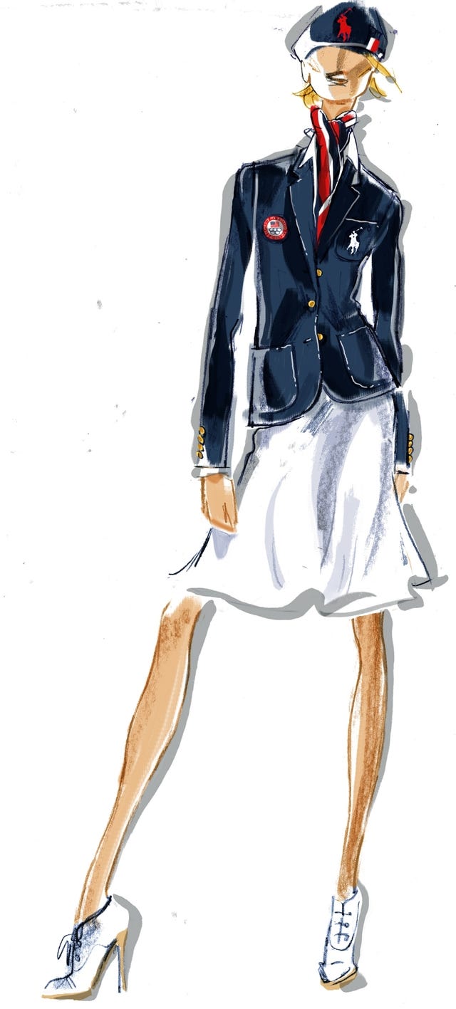 Athletes from around the globe will proudly march in the parade of nations in the Opening Ceremonies of the 2012 Summer Olympic Games in London, England on Friday night. Ralph Lauren has outfitted Team USA in red, white, and blue uniforms to wear in the Opening and Closing Ceremonies, as well as informal wear to sport in the Athlete Village. Take a look at some of the sketches and the looks they eventually inspired, modeled by esteemed members of Team USA. The uniforms have stirred controversy for being manufactured in China. Ralph Lauren issued a statement in response, saying in part, "We are honored to continue our relationship with the United States Olympic Committee… Ralph Lauren promises to lead the conversation within our industry and our government to address the issue to increase manufacturing in the United States. We have committed to producing the Opening and Closing ceremony Team USA uniforms in the United States that will be worn for the 2014 Olympic Games."