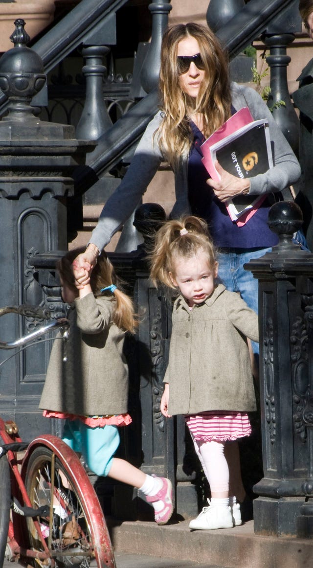 Sarah Jessica Parker sends twin daughters Marion and Tabitha off to school.