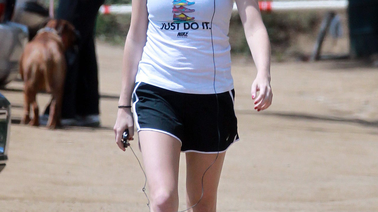 is snapped on a jog on April 27, 2012 in the Hollywood Hills, CA.